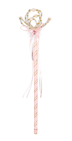 La varita Alexandra de Souza, es una preciosa varita de raso rosa con adornos dorados y perlas blancas- Será el complemento perfecto de cualquier disfraz de princesa.